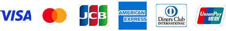 VISA、Mastercard、JCB、AMEX、DISCOVER、MUFGCRAD、DC、UFJ card NicoS、We chat、支付宝、銀聯、デビット