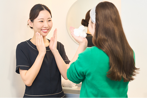 当院では、正しい洗顔こそが肌ケアの基本であると考え、1996年の開業当初よりスタッフによる洗顔指導を行っております。