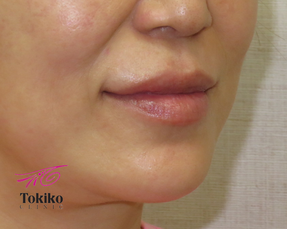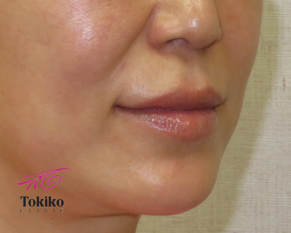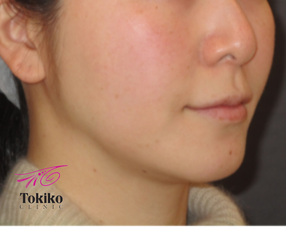 顎ヒアルロン酸:あごのヒアルロン酸でお顔の印象がずいぶん変わります。 若い人はすっきりしたシャープな印象になり小顔効果があります。 年配の方なら、リストアップ効果で若々しい印象になります。Eラインを整え、正中のラインにあごの先を作るように努めます。静止時の状態だけでなく、笑った時の状態も見て、どの位置にどれくらい入れるかを判断しています。