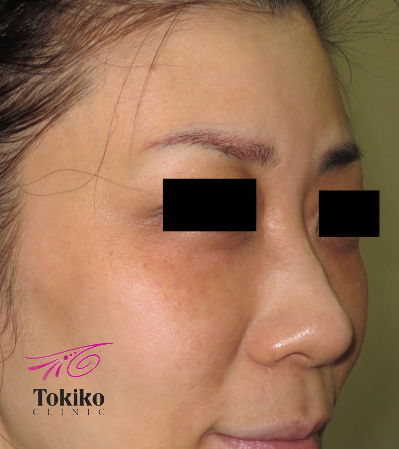 治療後は患部に赤みが出る場合がございますが、約1~2日で軽快します。赤みはお化粧で隠せる程度です。翌日からお化粧できます。