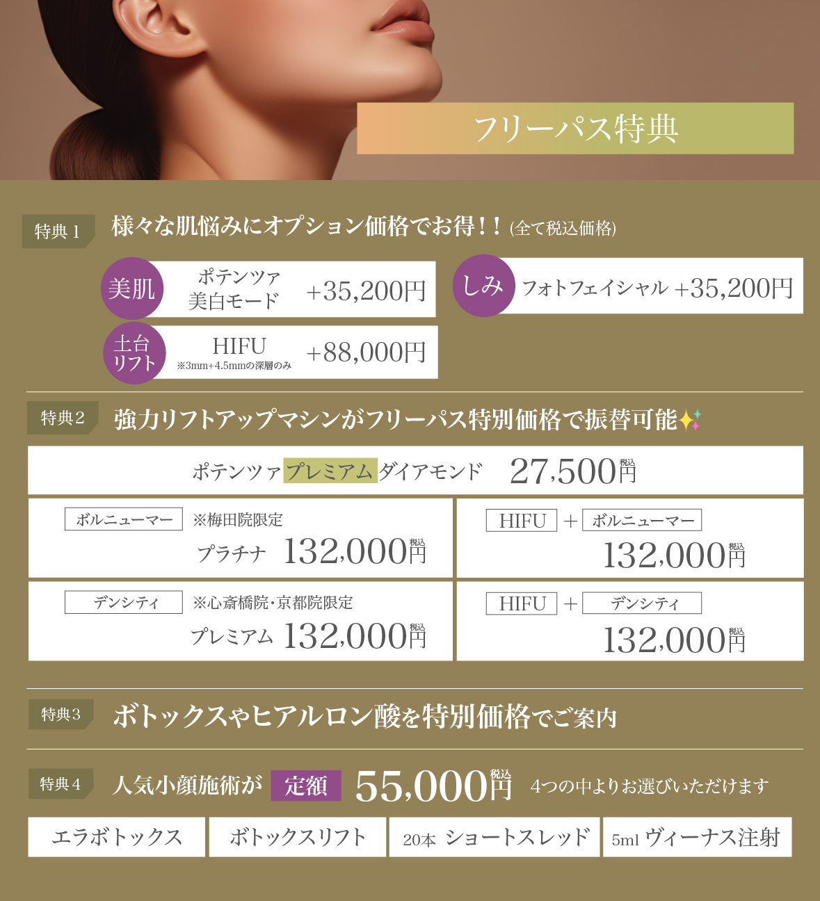 | 施術時間 | 20~60分程度(麻酔クリーム使用時+20分〜30分) |