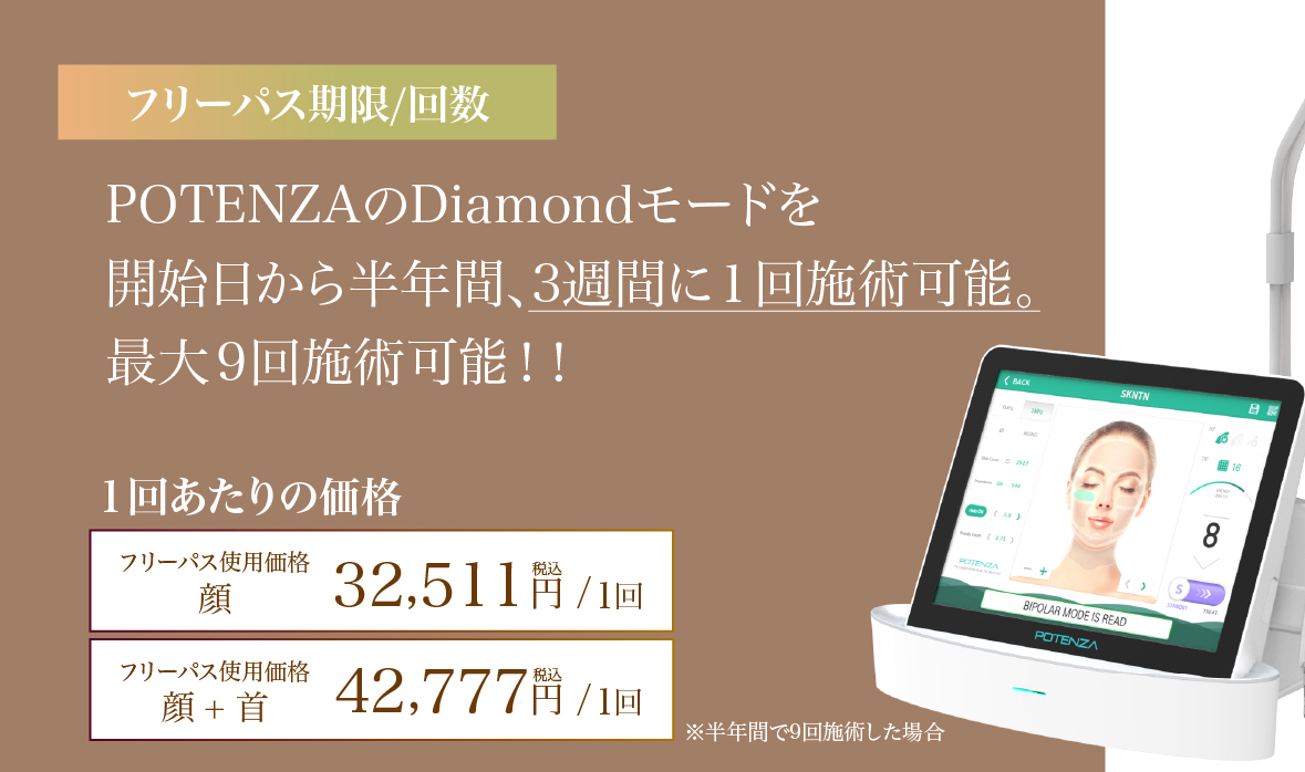 ダイヤモンドチップは、1ショットでモノポーラとバイポーラが照射される独自の照射方式が採用されています。