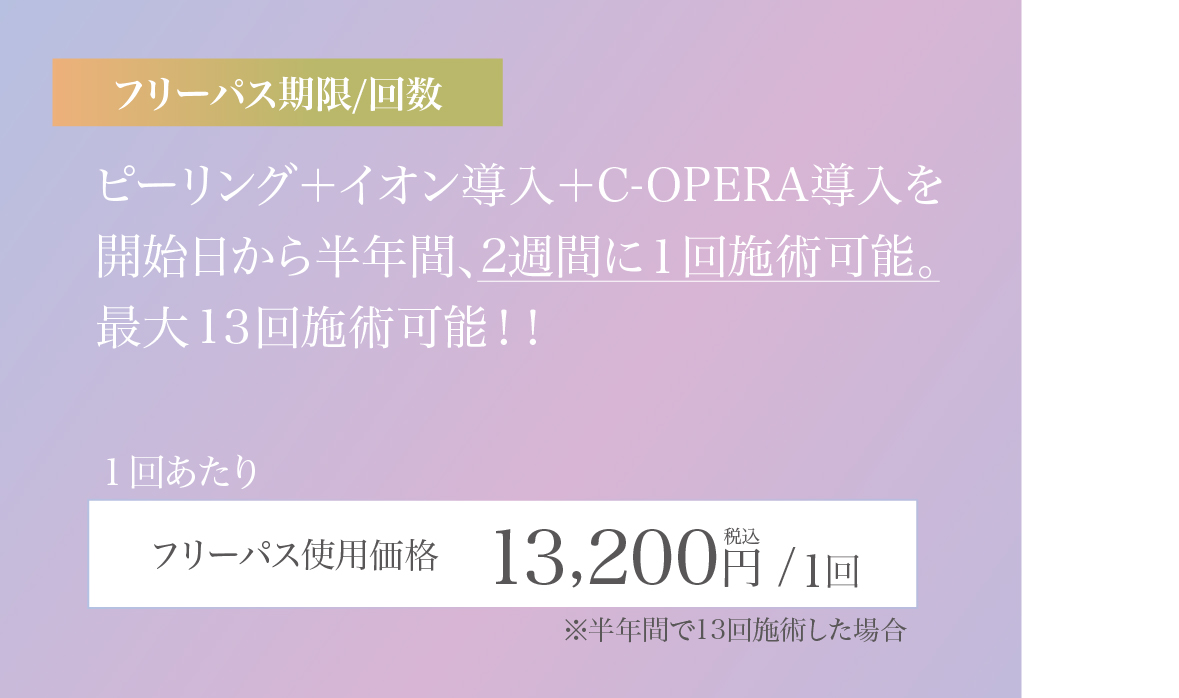 (施術間隔が必要の為、2週間に1回施術可能、最大13回までとなります)