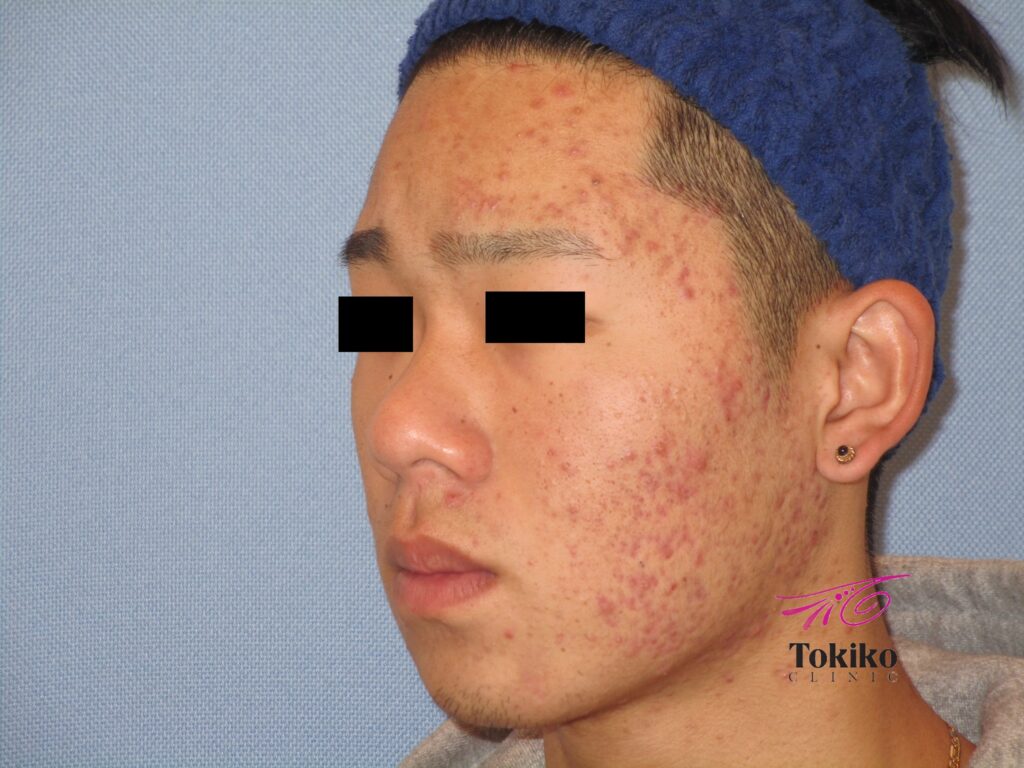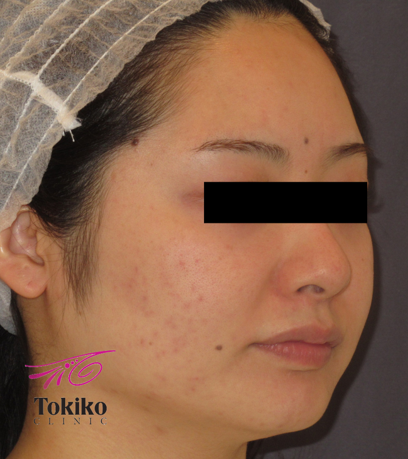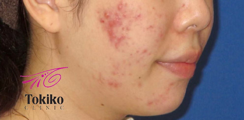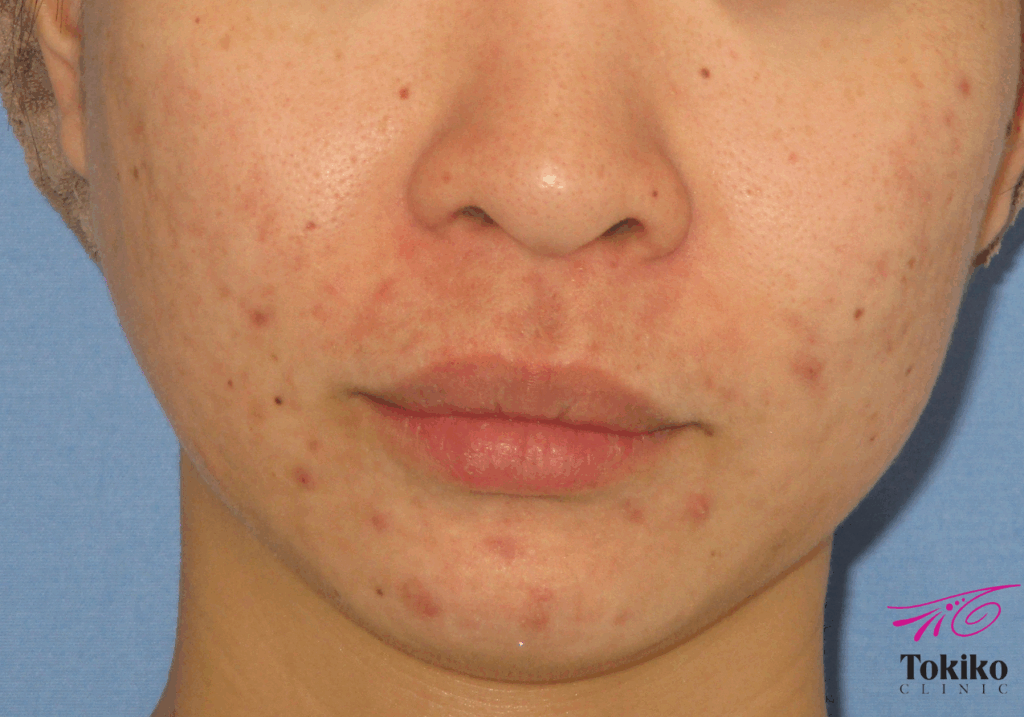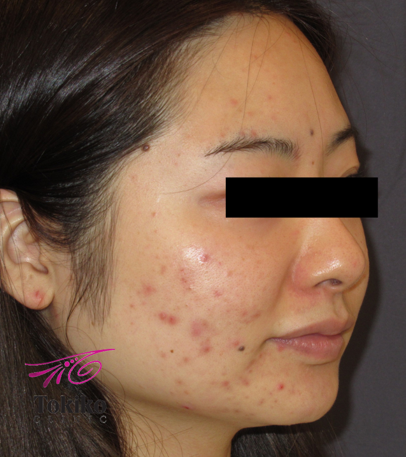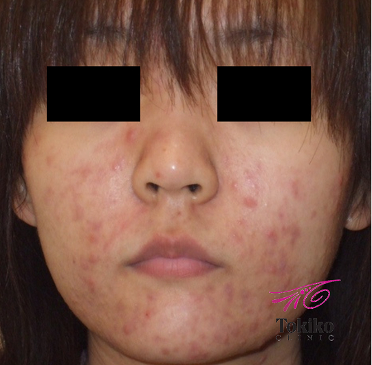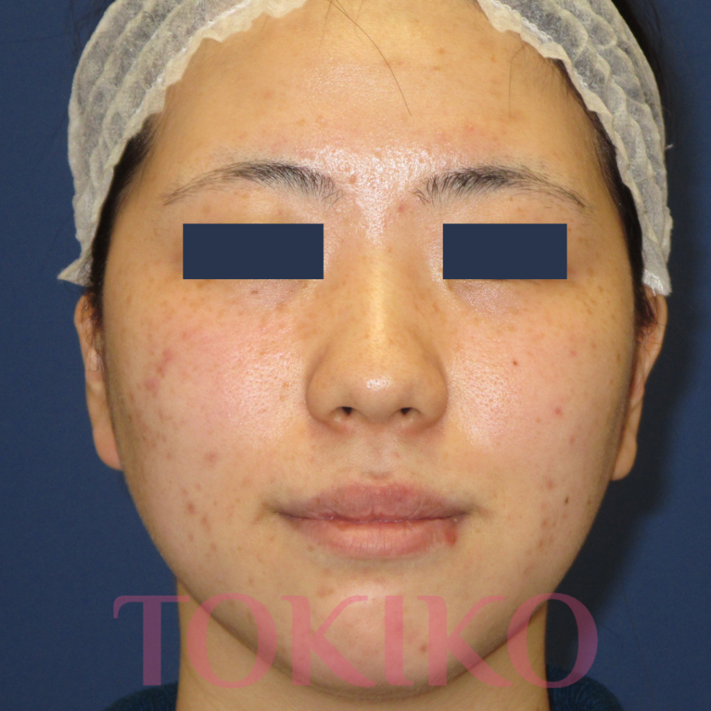 中学生のころから繰り返すニキビで治療を開始。ピーリングと有効成分導入がセットになったニキビベーシックプランを10回施行し、ニキビが激減しました。ここからは、ニキビ跡の赤みの改善と色素沈着の予防、新たなニキビが出にくい肌作りのために治療継続をお勧めしています。