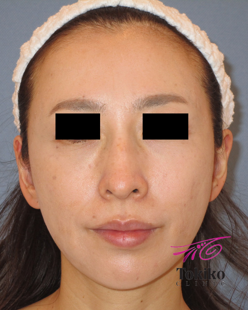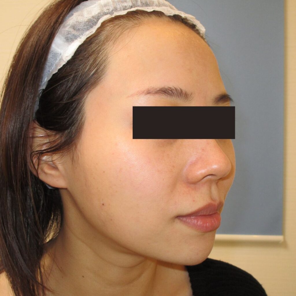 顎ヒアルロン酸:あごのヒアルロン酸でお顔の印象がずいぶん変わります。 若い人はすっきりしたシャープな印象になり小顔効果があります。 年配の方なら、リストアップ効果で若々しい印象になります。Eラインを整え、正中のラインにあごの先を作るように努めます。静止時の状態だけでなく、笑った時の状態も見て、どの位置にどれくらい入れるかを判断しています。
