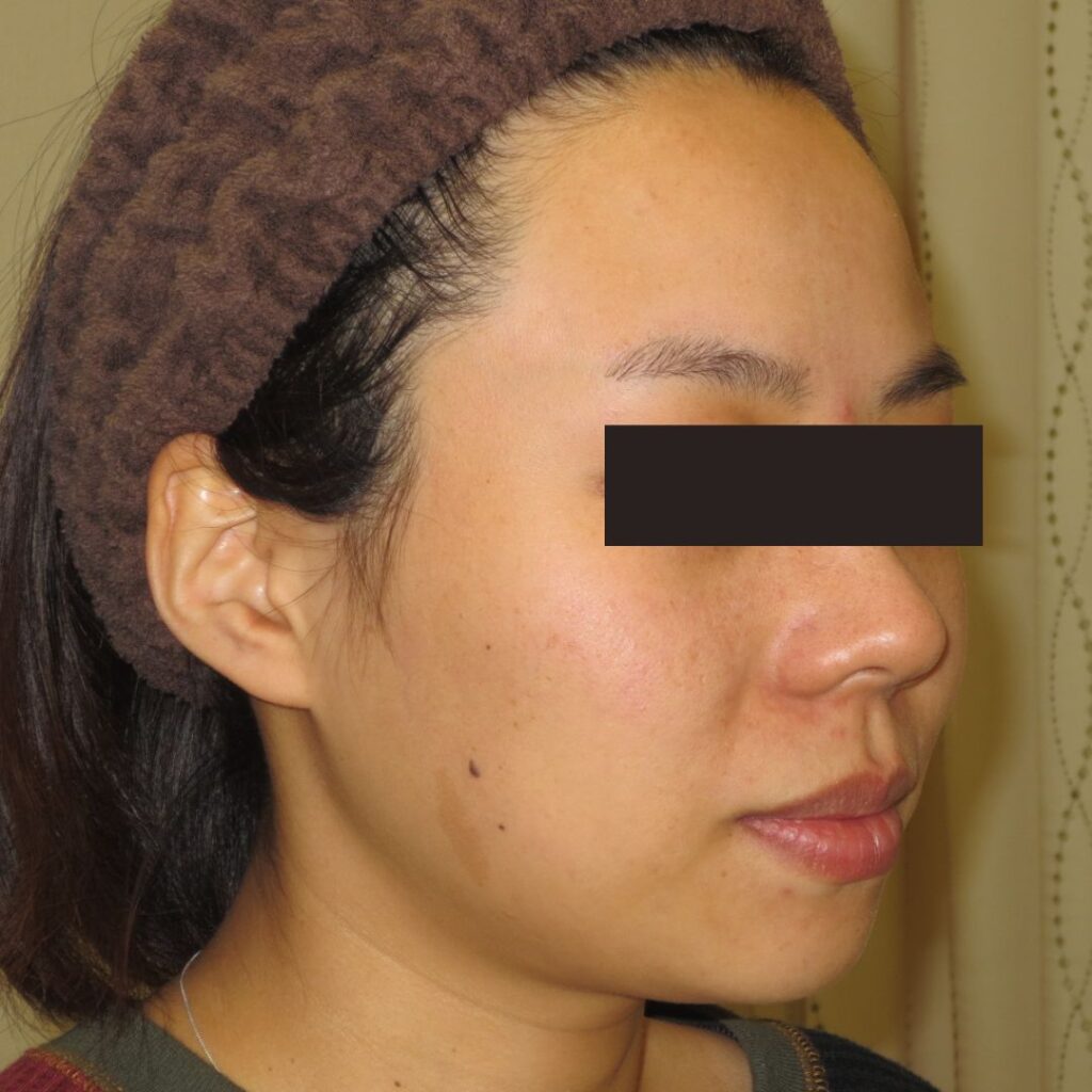 リスク:感染、くぼみ、ひきつれ、硬結 ダウンタイム:腫れ・むくみ・内出血・表情によって痛み