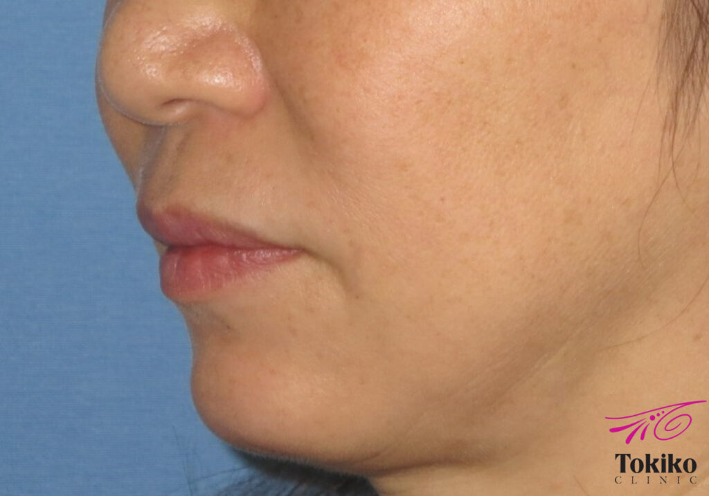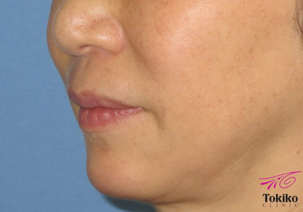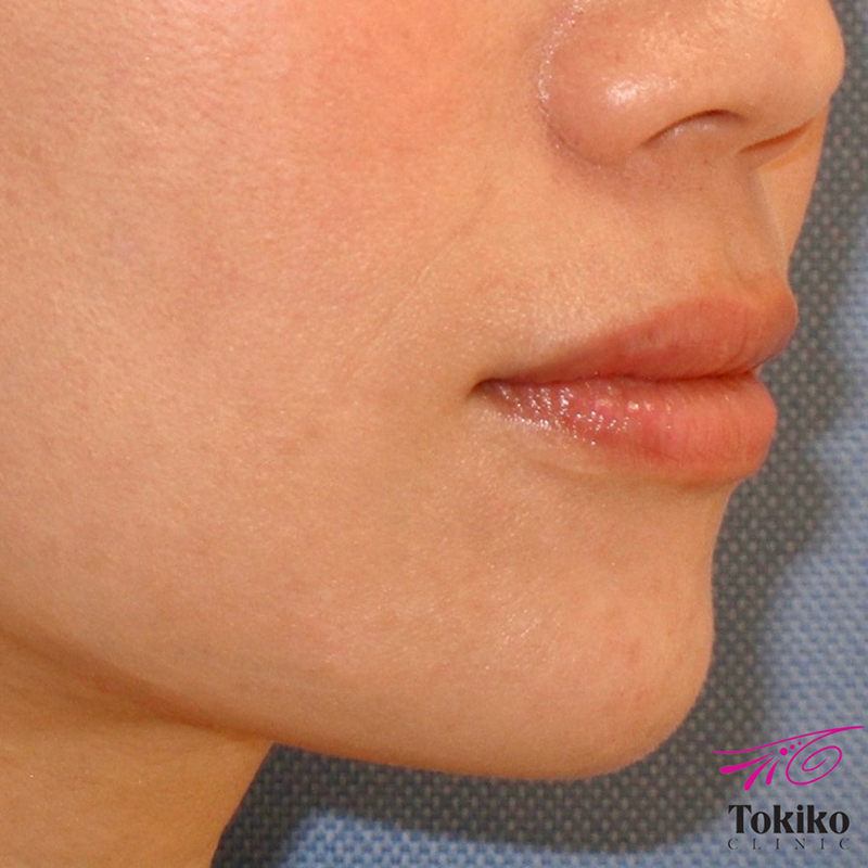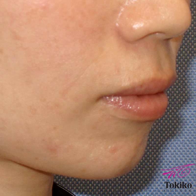 日本人はあごが小さい人が多いです。 下あごの骨格自体が小さい人が多いのと、年齢を重ねるうちに骨が小さくなっていくので、年配の方はあごが小さいことが多いのです。 若い人は、Eラインを気にしているので、あごに対する意識が高くて、あごのヒアルロン酸の注入希望が多い印象です。 あごのヒアルロン酸で、お顔の印象がずいぶん変わります。 若い人はVラインのフェイスラインになり、すっきりしたシャープな印象になります。 年配の方なら、若々しい印象になります。 麻酔クリームを塗った後、ヒアルロン酸注入を行います。かみ合わせが悪く下あごがずれている、あごの筋肉の付き方に左右差がある、噛み癖で片方のあごのほうがサイズが大きくなっているなど、あごの形もさまざまなので、できるだけ正中のラインにあごの先を作るように努めます。静止時の状態だけでなく、笑った時の状態も見て、どの位置にどれくらい入れるかを判断しています。