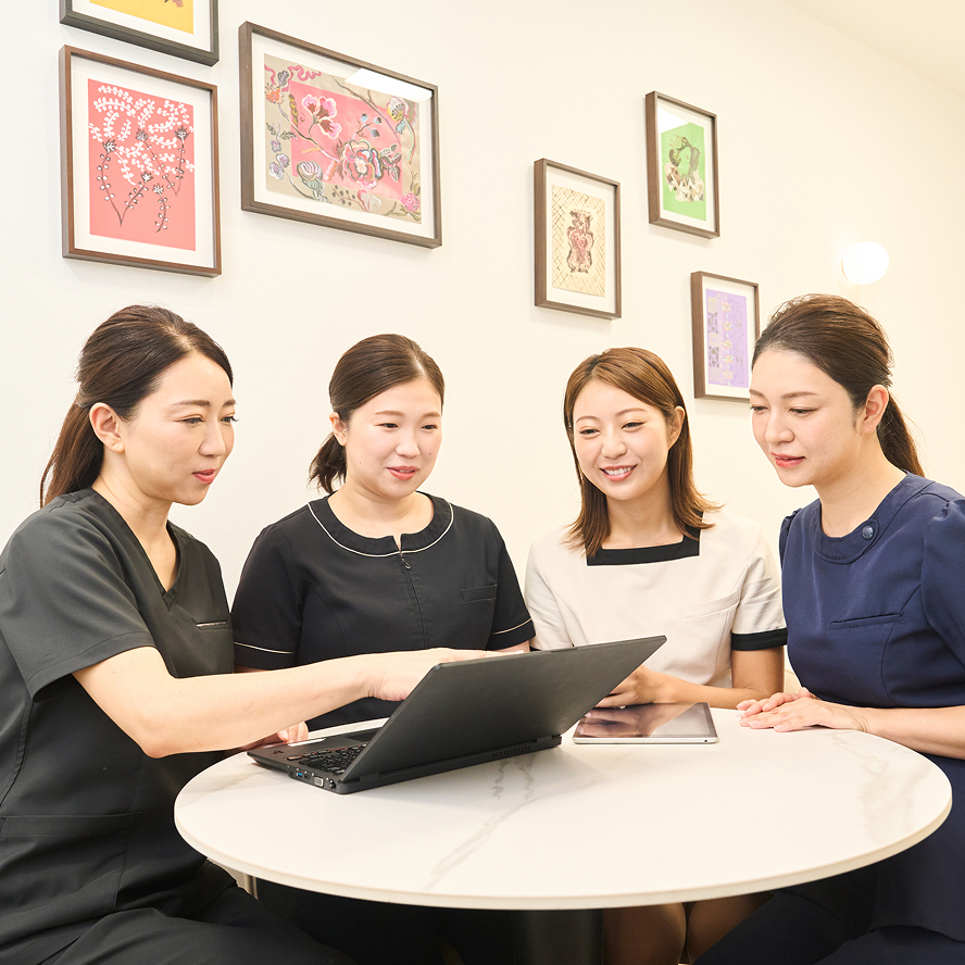 ドクター・看護師・エステティシャン・ビューティコンシェルジュが、それぞれの専門性を尊重しながら連携するチーム医療を実践しています。