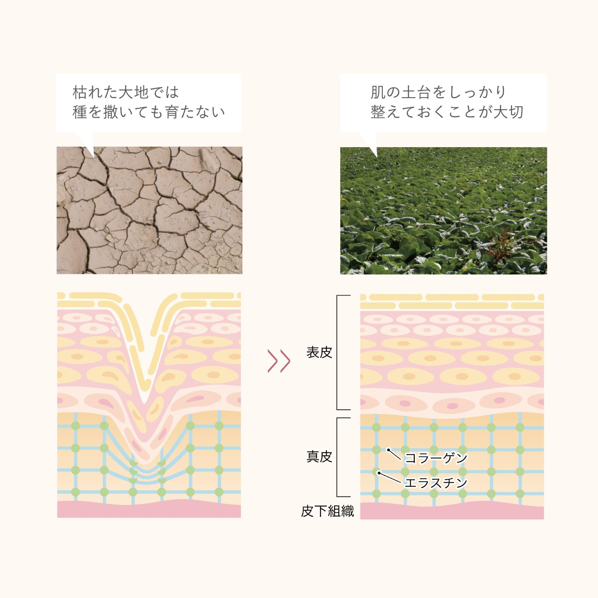 細胞外マトリックス(ECM)のリモデリングという、エイジング肌のコラーゲン、エラスチン、ヒアルロン酸の構造を若い頃の肌に引き戻す作用が期待されます。