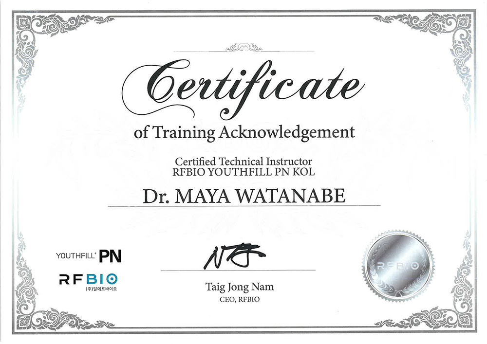 トキコクリニック心斎橋院の渡邉 麻耶院長は、Youthfillシリーズを製造販売する韓国RFBio社認定のKOL(Key Opinion Leader)です。国内の医師に技術指導を行い、安全な注入治療の啓発活動を行っています。