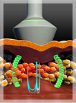 TripollarRFは3つの端子からRF(高周波)を流すことでRFが反発し合い、より深く皮下組織に熱エネルギーを与え、熱変性によるリフトアップ効果と線維芽細胞(コラーゲン)の活性化を促します。