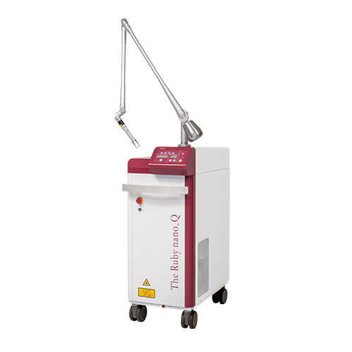 Qスイッチルビーレーザー、または、Qスイッチヤグレーザーを用いて、シミ・そばかす・アザ、タトゥーなどの幅広い色素性病変治療を行うレーザー治療です。シミの原因であるメラニン色素に選択的に吸収され熱破壊することで、シミやそばかす、太田母斑などの皮膚の変色を治療します。