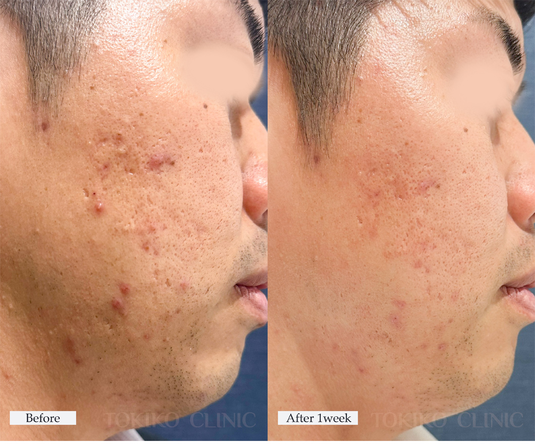 直接皮膚に注入して真皮コラーゲンの生成を促進、ニキビ跡にも効果があります。