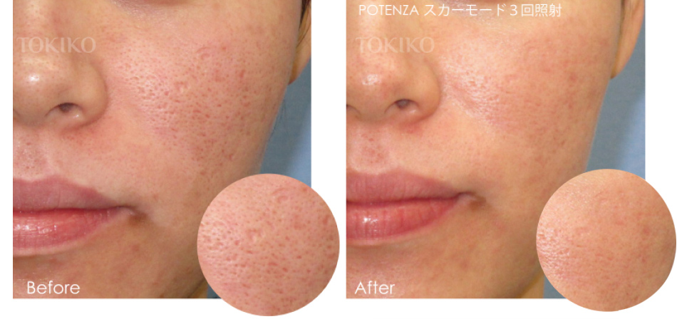 POTENZA(ポテンツァ)は、ニキビ・ニキビ跡・毛穴・肝斑・赤ら顔・たるみなど様々なお悩みに対応出来、トキコクリニックでもリピーター様も多く、効果を実感していただきやすい美肌治療機器です。