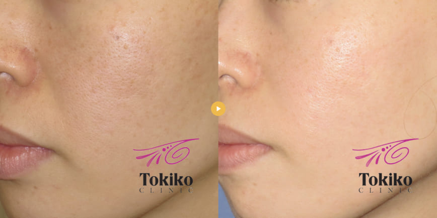 通常のボトックスでは筋肉の動きを抑えて表情じわ等の改善に使用されますが、この濃度や注入層を調整することで、筋肉の動きを残したまま皮脂分泌や発汗を抑え、毛穴開き・小じわ・たるみを改善する効果をもたらします。