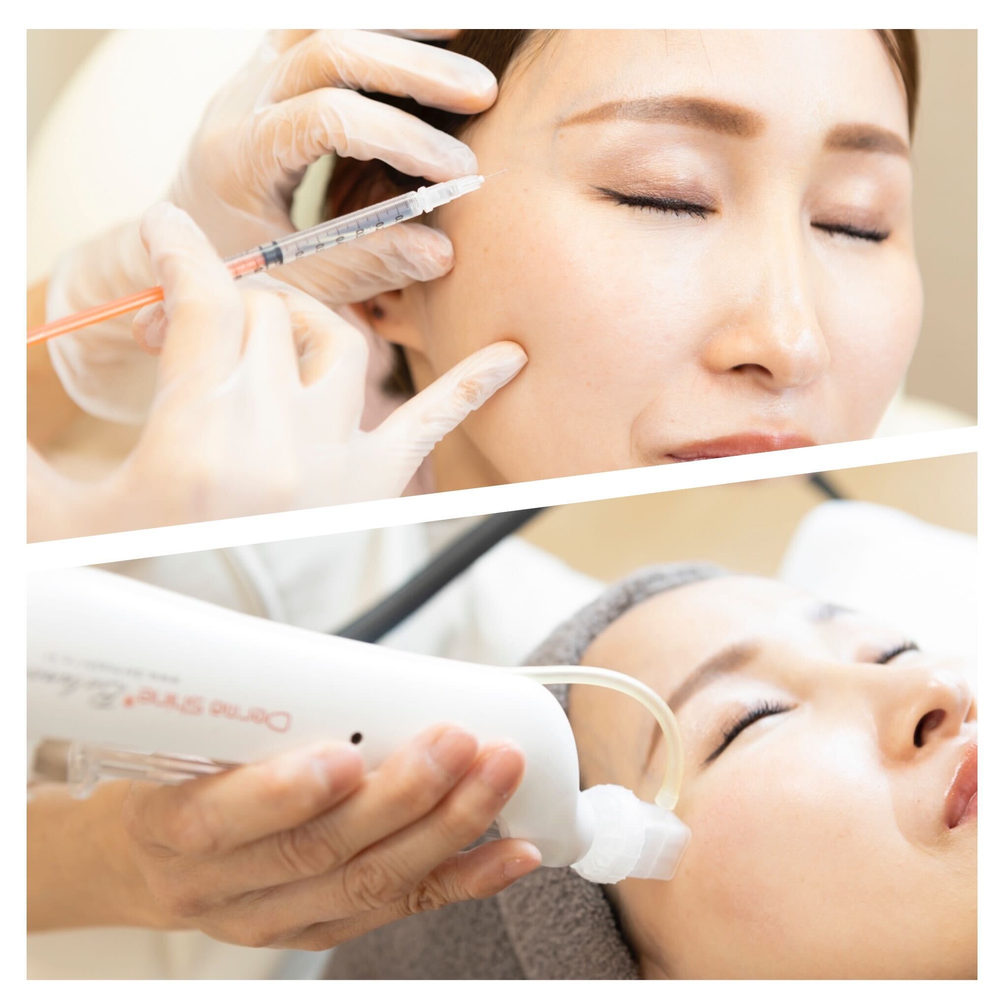 小ジワなど特に気になる部位(目元や口元など)は手打ち、お顔全体には水光注射と、両方の長所を活かして施行することも可能です。