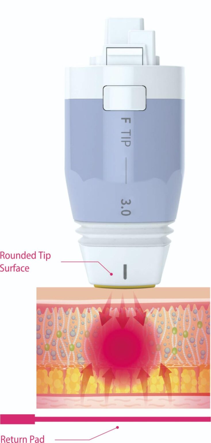 ボルニューマーと比べてSMAS筋膜や脂肪深層まで熱入れが可能で、比較的深い層のリフトアップも行うことができます。